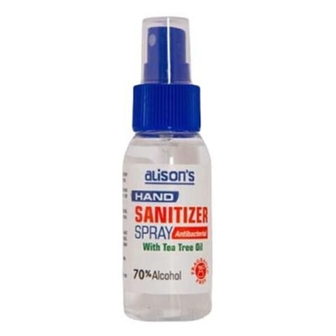 Alisons Hand Sanitizer SPRAY Anti-Bacterial with Tea Tree Oil kills 99.99% of germs in seconds without water. It contains Moisturizers, Vitamins and special ingredients to prevent skin irritation and dryness.