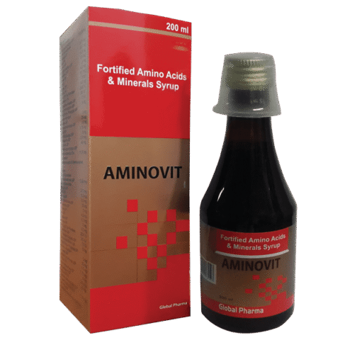 Aminovit syrup contains Amino acids which are the building materials for the formation of protein structures in the body.