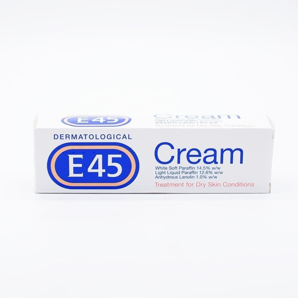 E45 cream has been clinically proven to treat and soothe dry, itching, flaking, chapped, rough and calloused skin, sunburn and detergent hands.A rich soothing cream; unperfumed and non-greasy. Cream E45 brings relief to a wide range of dry skin conditions including flaking skin. It also helps soften rough, hard skin on other parts of the body. Cream E45 reduces skin dryness in conditions such as eczema.