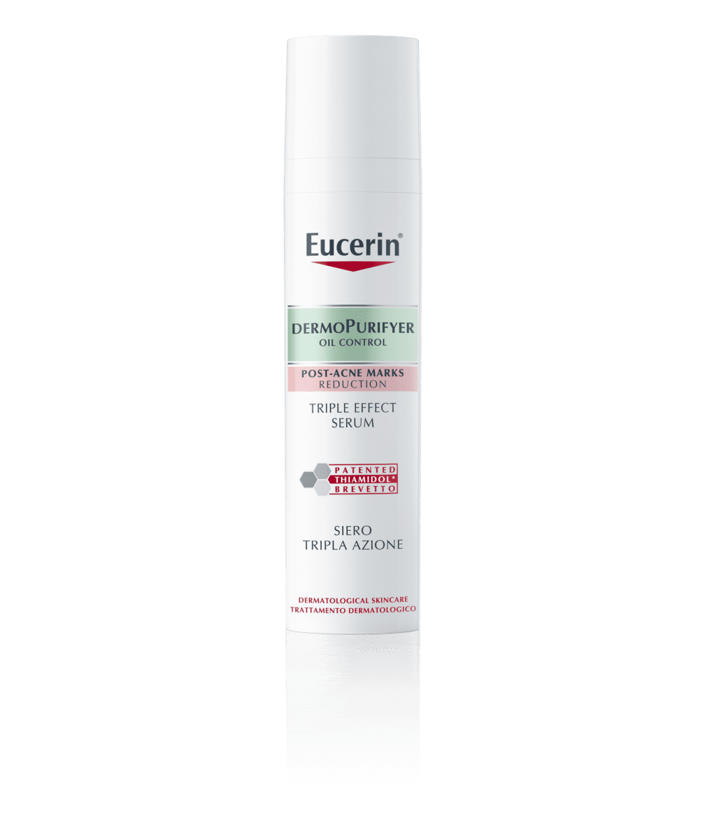 Eucerin DermoPure Triple Effect Serum is the first real solution for post-acne marks. Formulated to treat acne-prone skin with post-acne marks, this serum is clinically proven to fight against acne and visibly reduce persistent PIH with three main factors: