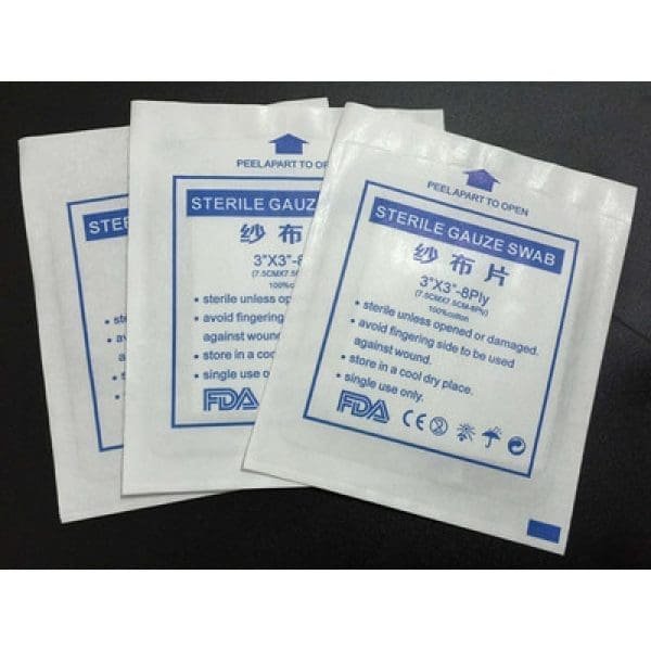 Gauze Swabs Sterile 3X3 100s .Sterile gauze is used to place over before taping ,strapping or bandaging up or can be soaked in antiseptic liquid and used to wipe over hard surfaces .
