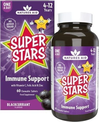 Super Stars Immune Support chewable tablets are easy to take, with a natural blackcurrant flavour.