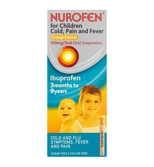 Nurofen for Children Cold Pain and Fever 100mg/5ml Oral Suspension is a liquid ibuprofen suspension that provides effective cold, pain and fever relief.