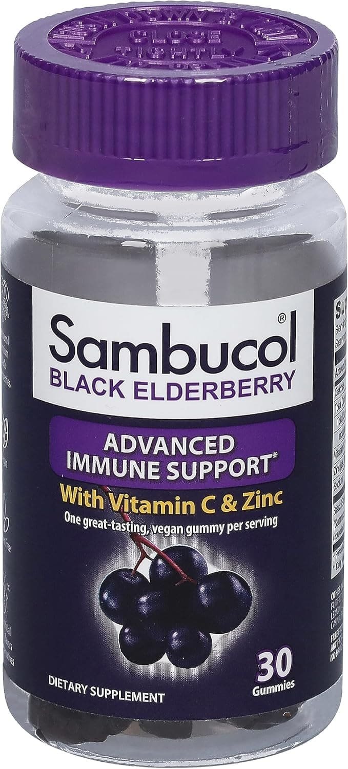 Sambucol Black Elderberry Gummies provide strong immune system support to help you and your whole family stay healthy throughout the year. Sambucol Black Elderberry Gummies conveniently arm you with some of the best protection nature has to offer. Suitable for vegetarians and vegans alike. The Sambucol Gummies are Pectin based, (no gelatin) which means they won’t stick to your teeth, and won’t melt. Each gummy has only 1 gram of sugar. Sambucol uses only specific European Elderberries (Sambucus Nigra) for our syrups. Black Elderberries have been recognized for centuries for their immune-supportive properties. Sambucol is a unique black elderberry extract rich in immune supporting flavonoids. Flavonoids are powerful, natural antioxidants that are thought to work to protect the body’s cells from the potential damage caused by free radicals. Certain flavonoids – anthocyanins – are found primarily in the pigments of dark blue and deep purple fruits such as the black elderberry. They assist with the body’s natural defenses and cell communication, providing immune support. These statements have not been evaluated by the Food and Drug Administration. This product is not intended to diagnose, treat, cure, or prevent any disease.